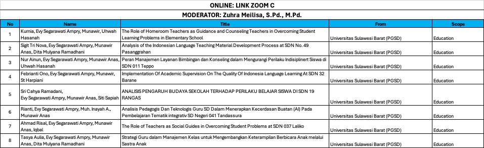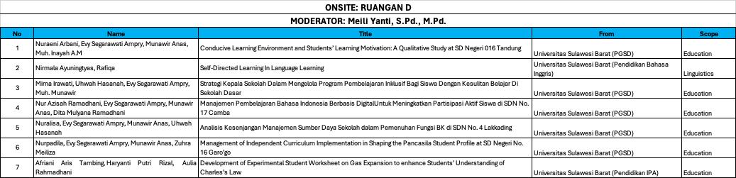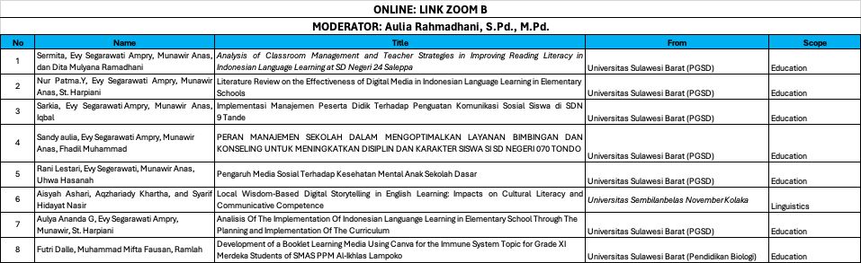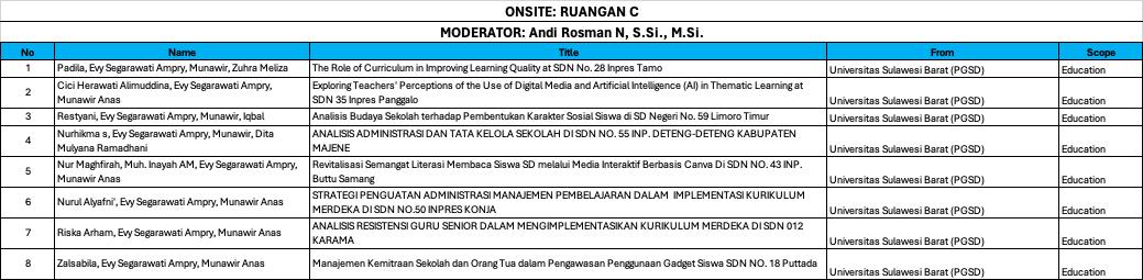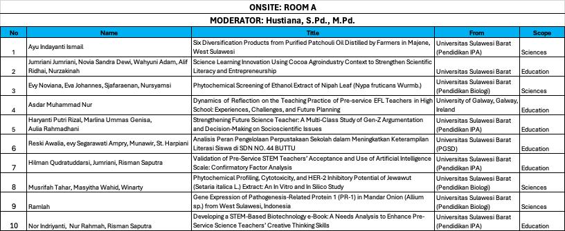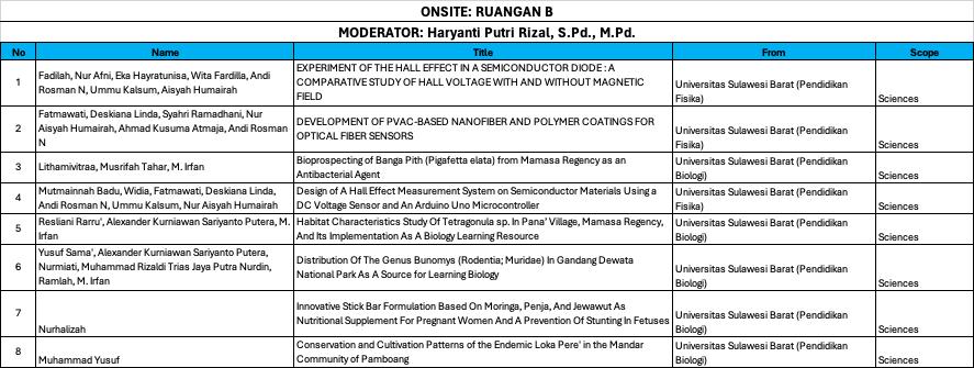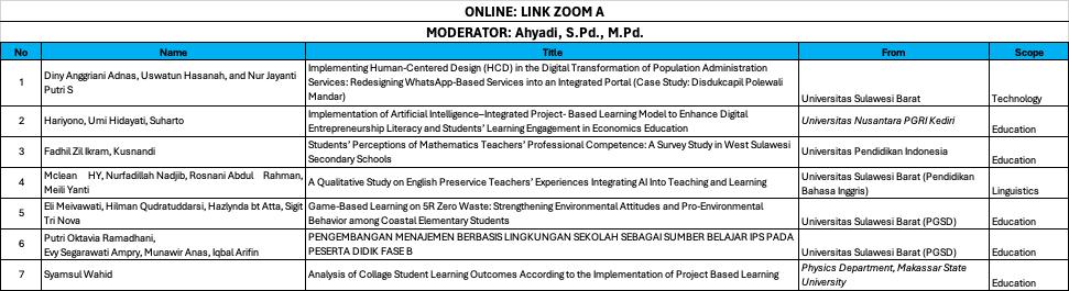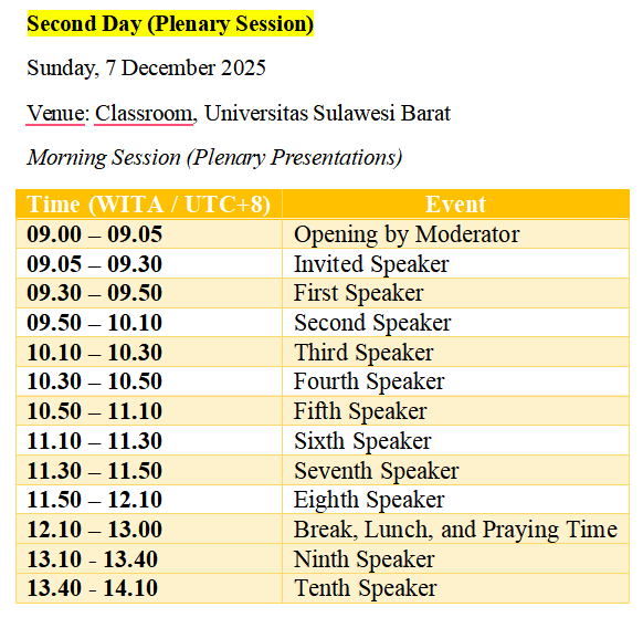 Schedule for Onsite Presenter (Classroom on Gedung A Universitas Sulawesi Barat)